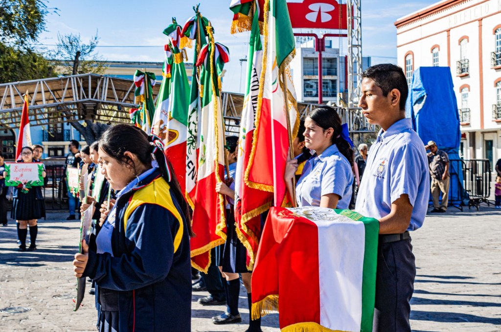 En la plaza principal «Miguel Hidalgo» se realizó la importante ceremonia de la celebración del Día de la Bandera, que fue oficializado en el año de 1940 por el Presidente Lázaro Cárdenas del Río.