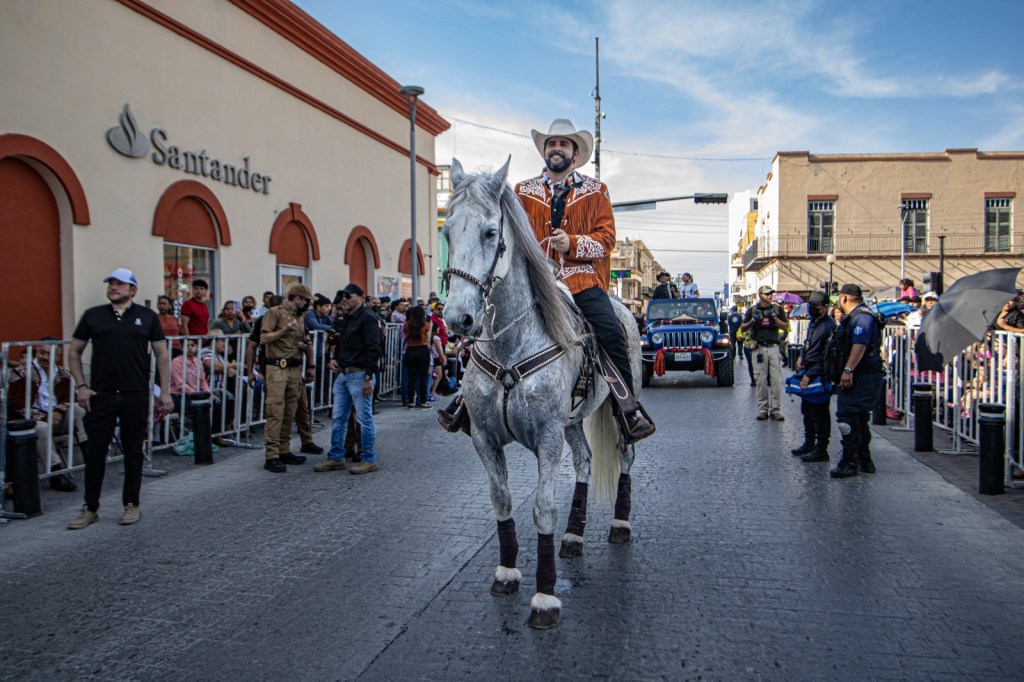 El Huésped Distinguido desfiló montando a caballo, desde donde saludó a las familias que acudieron a disfrutar de las fiestas que anualmente unen a Matamoros con Brownsville, Texas.