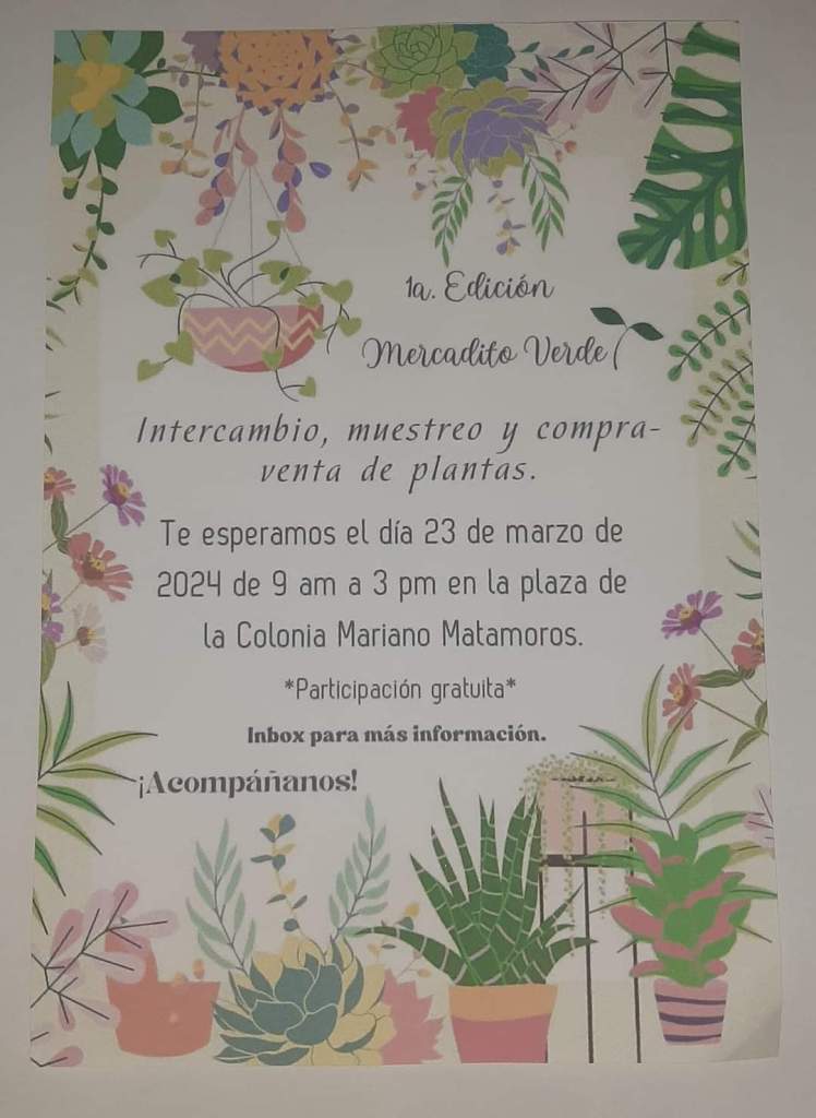 Estuvo fenomenal la invitación al mercadito verde » un pedazo de cielo » que se llevo a cabo con éxito en la placita de la colonia Mariano Matamoros.