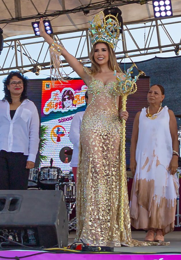 Autoridades municipales coronaron esta tarde a Viana Silva como reina del Festival del Mar 2024, acto realizado en el marco del homenaje ofrecido en Playa Bagdad en honor del ídolo de las multitudes, Rigo Tovar.