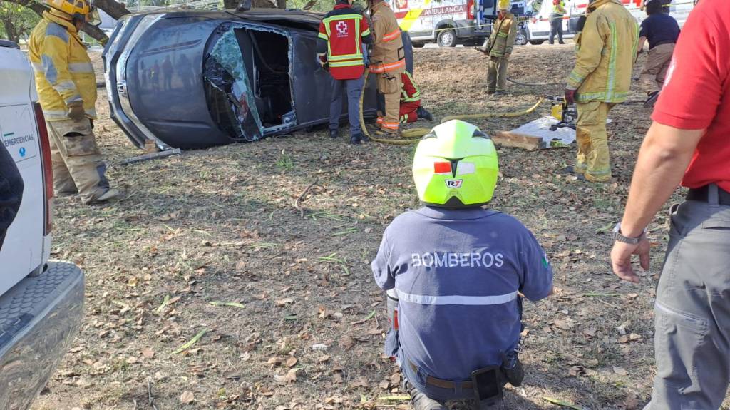 Saliendo proyectada al exterior una bebé de 8 meses de edad quedando sin conocimiento unos minutos y un masculino quien fue a rebotar contra una serie de árboles resultando tres personas lesionadas graves y uno más que se dio a la fuga.