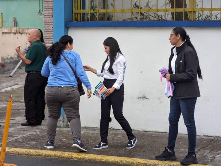 La candidata de la alianza Fuerza y Corazón por Tamaulipas, Lety Salazar acudió a saludar a padres de familia mientras esperaban la salida de sus hijos de la escuela.