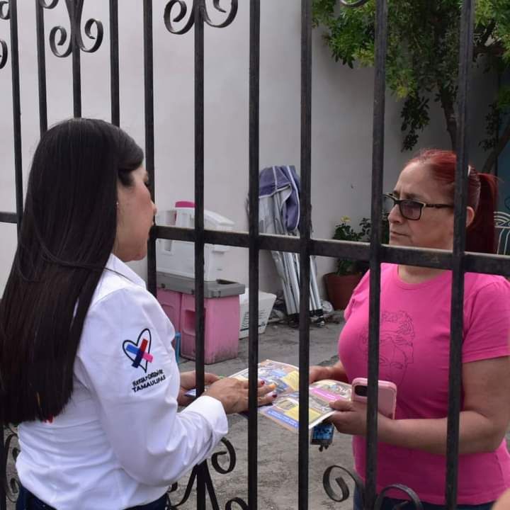 Matamoros.- La candidata de la coalición Fuerza y Corazón por Tamaulipas, Lety Salazar recorrió las calles de la colonia Lauro Villar para escuchar a los vecinos y mostrarles sus propuestas de campaña.