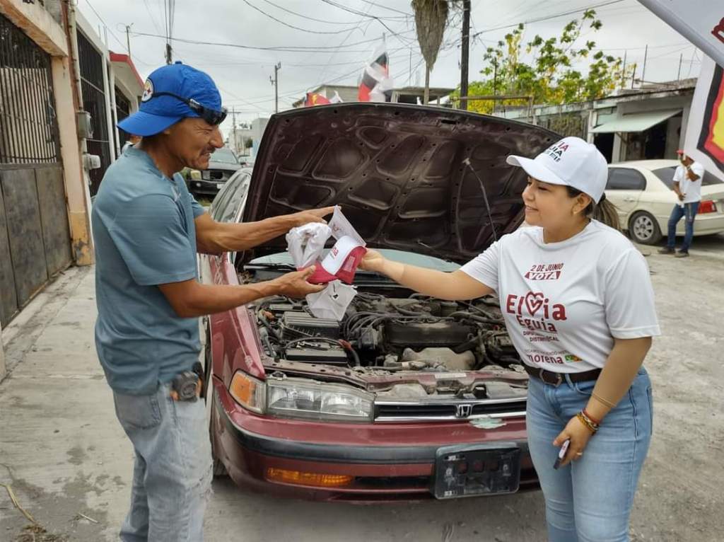 Elvia y su equipo de campaña, diariamente desde temprano caminan por el sector, solicitando el apoyo para este 2 de Junio.