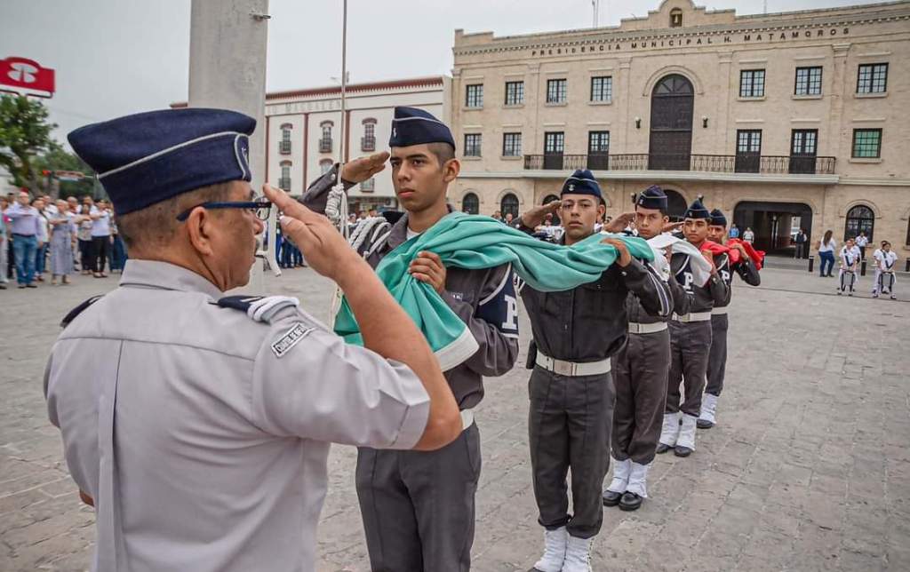 La bandera que es motivo de culto, orgullo, respecto, admiración y homenaje fue izada por elementos del Pentatlón Cuartel de Infantería de Marina, en presencia de los funcionarios municipales y empleados de las diferentes áreas de la Presidencia Municipal de Matamoros.