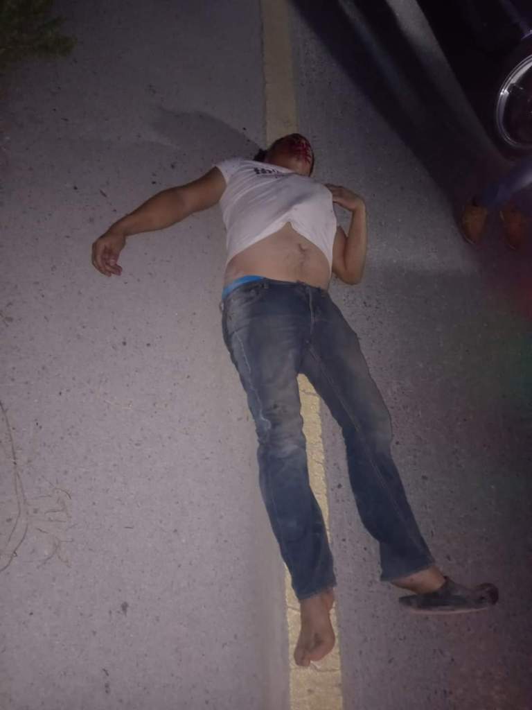Fue personal de Reporte Civil quienes encontraron tirado sobre el Pavimento al masculino que vestía playera blanca, pantalón de mezclilla azul y usaba solamente una chancla.