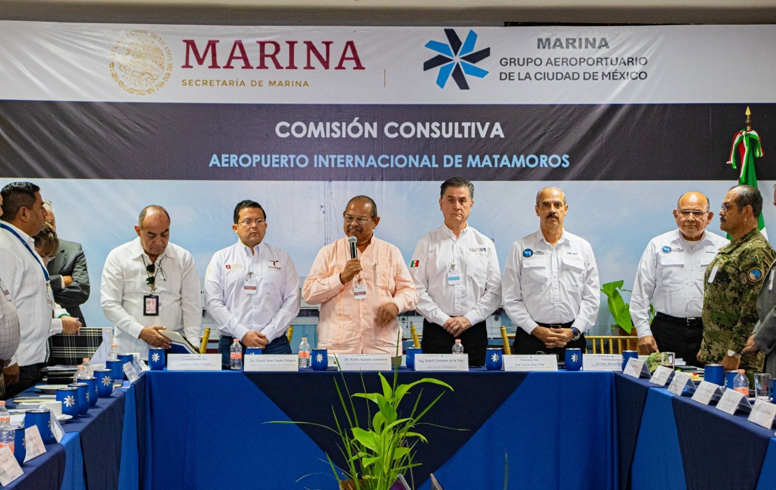 El Presidente Municipal, Dr. Rubén Sauceda Lumbreras, encabezó este viernes la segunda sesión de la Comisión Consultiva del Aeropuerto Internacional de Matamoros, organizada por la Secretaría de Marina a través del Grupo Aeroportuario de la Ciudad de México.