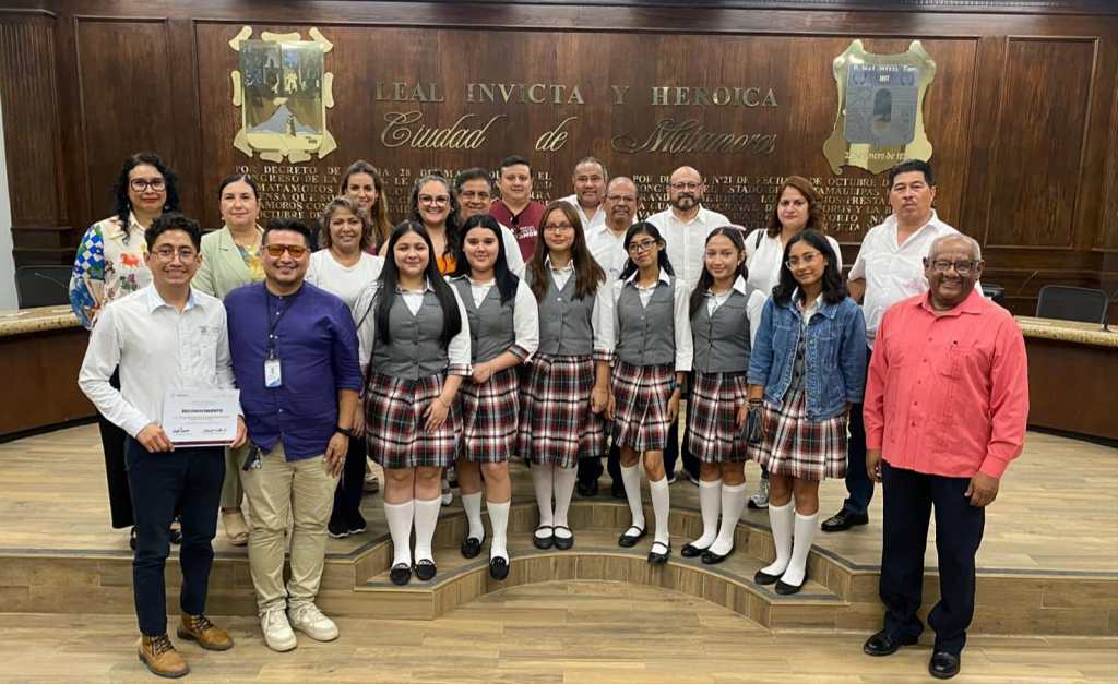 El reconocimiento también se hizo a las jóvenes participantes en la citada obra, quienes estudian en la Universidad Tamaulipeca, en nivel preparatoria.