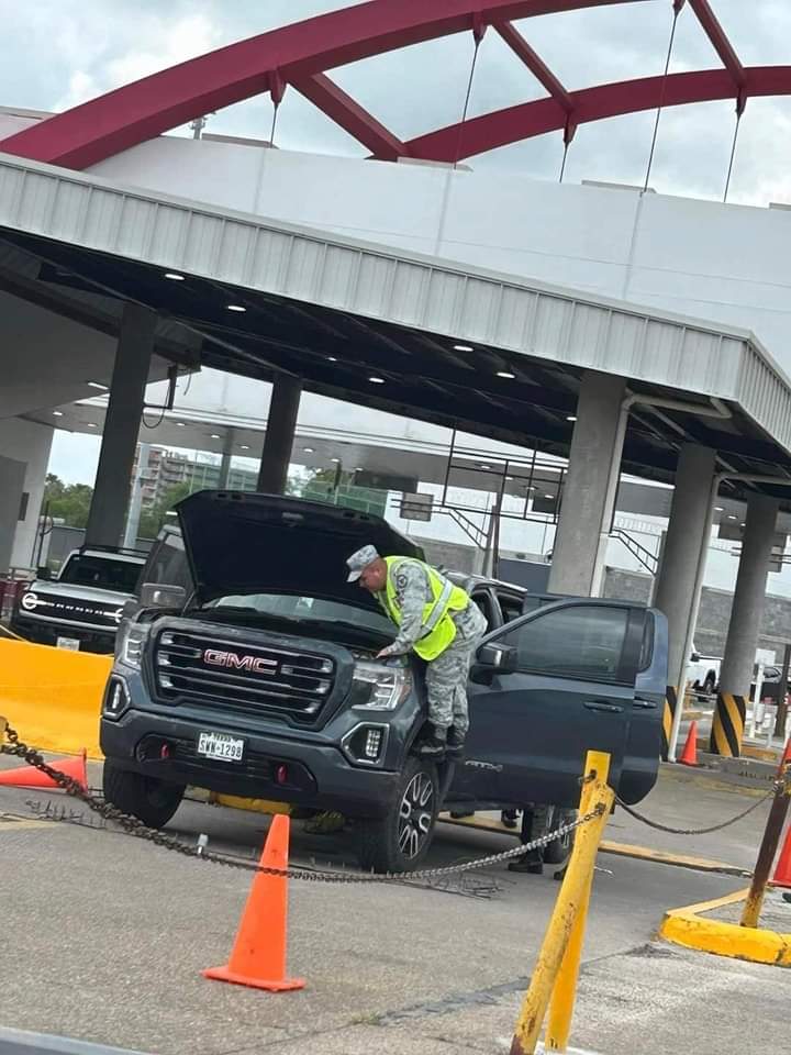 Elementos de la #GuardiaNacional decomisaron esta tarde una camioneta GMC con placas de #EstadosUnidos cuando el conductor de la unidad intentó ingresar a Matamoros por el Puente Internacional Puerta México.