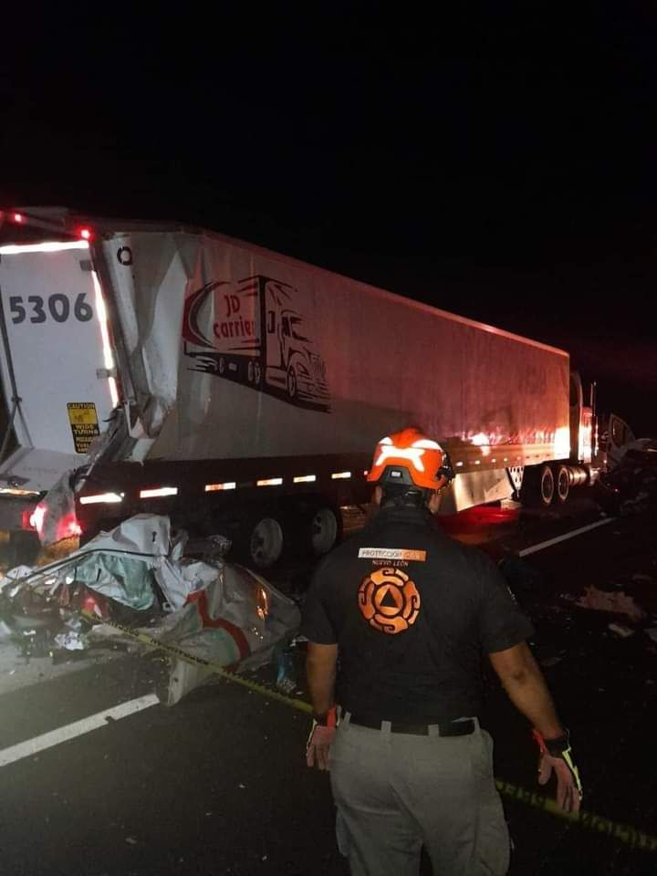 NuevoLeón -Un fuerte accidente vial sobre la autopista a Monterrey-Nuevo Laredo dejó como saldo cuatro personas fallecidas y una mujer gravemente herida, en la que se vio involucrada una ambulancia y un tráiler, en el municipio de Vallecillo, Nuevo León.