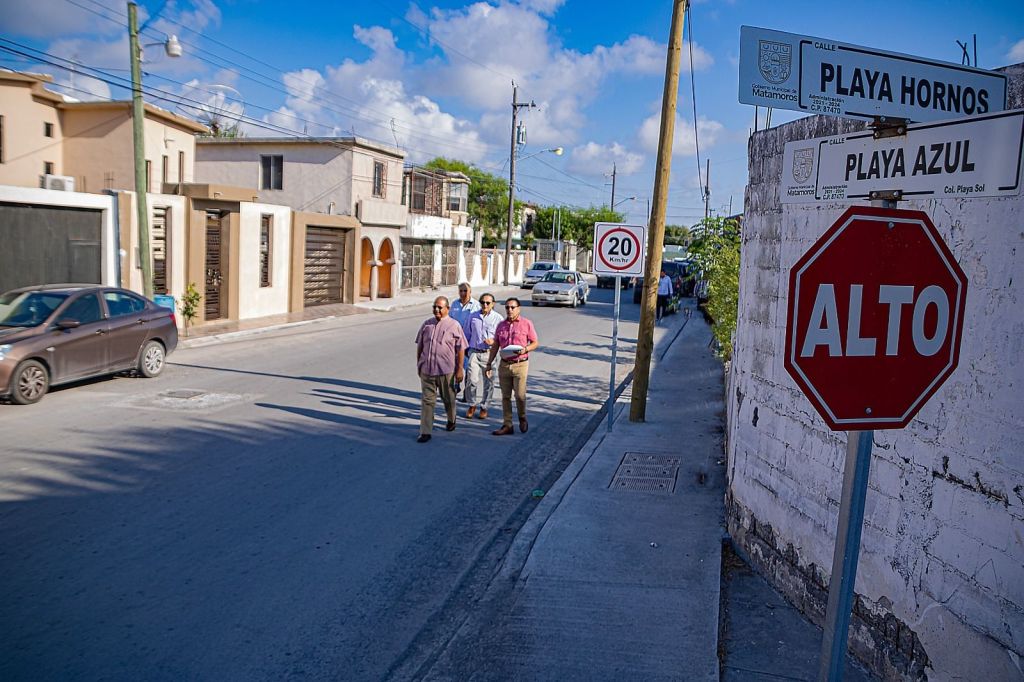 El Alcalde Sauceda Lumbreras también atestiguó la conclusión de los trabajos en la calle Playa Hornos, en el tramo de José López Portillo a Sierra Madre, en la colonia Lauro Villar, en donde además de la pavimentación se trabajó en las redes de agua potable y drenaje sanitario.