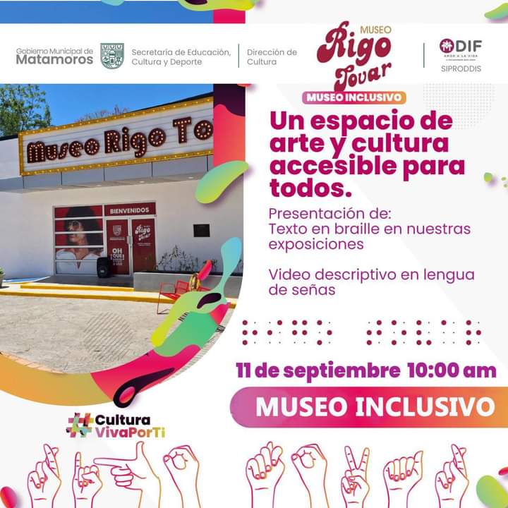 🎉 ¡El Museo Rigo Tovar es inclusivo! 🎉Te invitamos a un evento muy especial donde presentaremos el texto en braille y el video descriptivo en lenguaje de señas en nuestras exposiciones. ¡Un paso más hacia un espacio de arte y cultura accesible para todos!