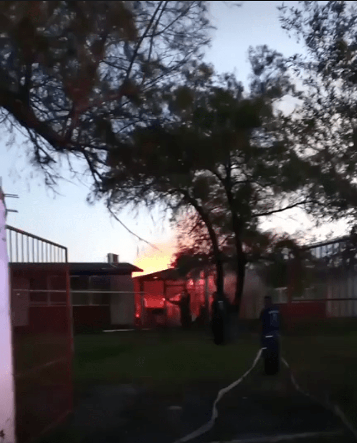 Hasta el momento solamente daños materiales se han registrado en una casita de madera donde servia de comedor para los alumnos.