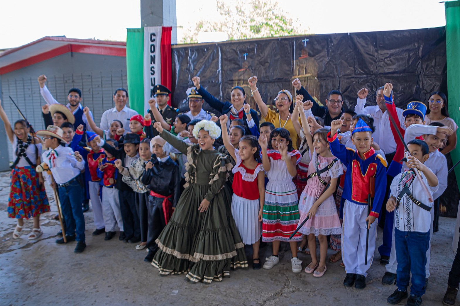 Un grupo de alumnos de la institución educativa, realizó una escenificación de los hechos acontecidos en la lucha por la independencia de este país, recordando la participación de Miguel Hidalgo y Costilla, Ignacio Allende, Josefa Ortiz de Domínguez, Guadalupe Victoria, entre otros.