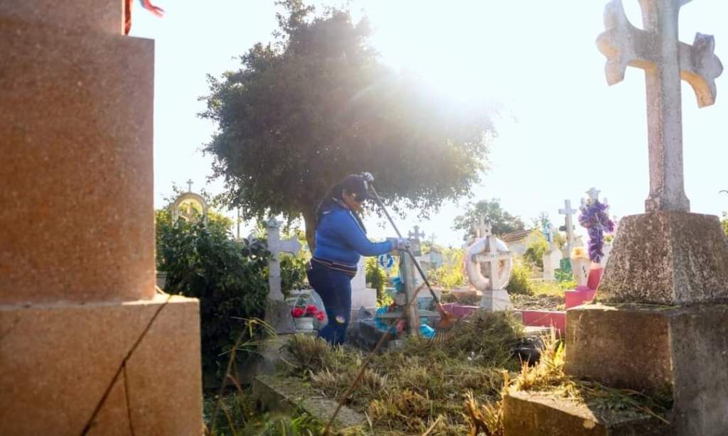 Se realizan trabajos de limpieza, retiro de maleza, escombro y basura, mejoramiento de accesos y rehabilitación del alumbrado público en los panteones municipales, toda vez que se han mantenido bastante descuidados.