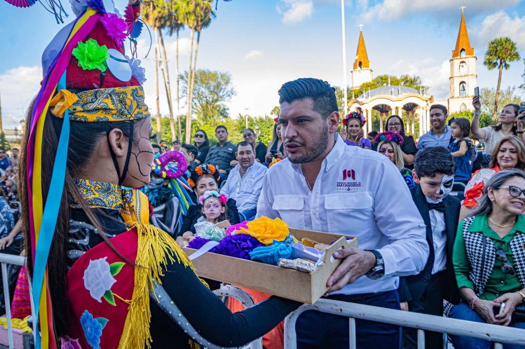 Matamoros, Tamaulipas.- Cumpliendo con el compromiso de conservar las tradiciones y crear más espacios seguros para las nuevas generaciones, el alcalde Alberto Granados Fávila encabezó el Desfile de la Huesuda 2024; una fiesta llena de color, fe y alegría.