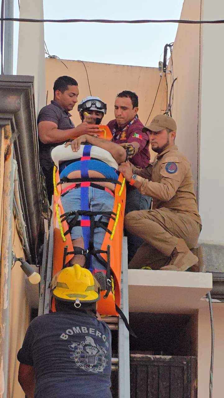 A bordo de la ambulancia de Cruz Roja, fue trasladado al Hospital General para recibir atención médica.