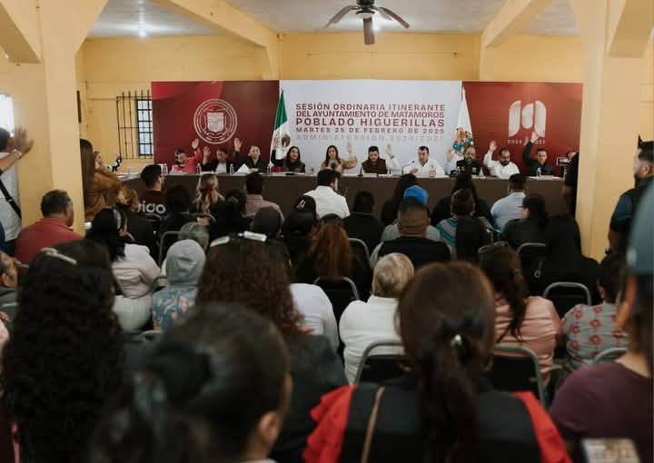 H. Matamoros, Tamaulipas.- El presidente municipal, Beto Granados; presidió las sesiones Sexta y Séptima del R. Ayuntamiento de Matamoros; las cuales se efectuaron en el salón de la Cooperativa Santa María del Poblado Higuerillas como parte del Cabildo itinerante.