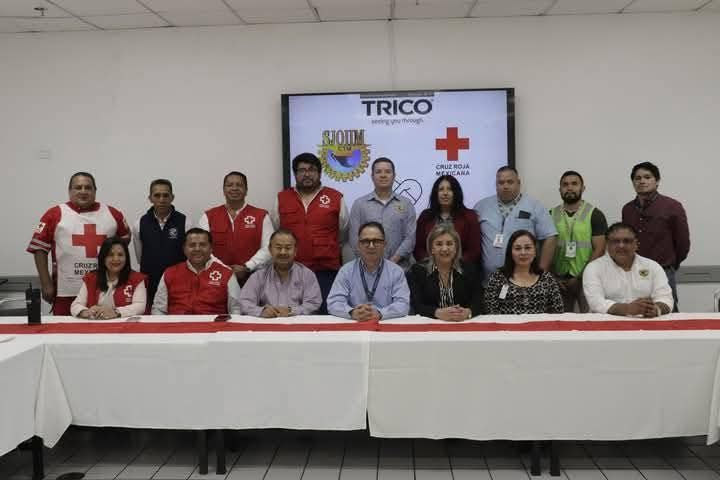 Directivos de la empresa Trico Componentes, personal de la Cruz Roja y el Secretario General del SJOIIM, Juan Villafuerte Morales, se reunieron para trabajar en la implementación de la Norma 035.