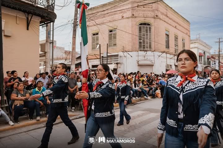 H. Matamoros; Tamaulipas. – El Presidente Municipal, Beto Granados; encabezó el Desfile Internacional de Fiestas Mexicanas 2025; donde estuvo acompañado por los Huéspedes Distinguidos de Matamoros; Carmen Muñoz, Bárbara de Regil y Adrián González.