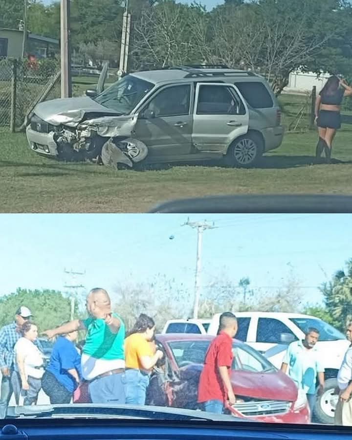 Un fuerte choque entre un carro y una camioneta se registra la tarde de este domingo en la carretera a la #PlayaBagdad a la altura del kilómetro 16 en el Ejido El Refugio.