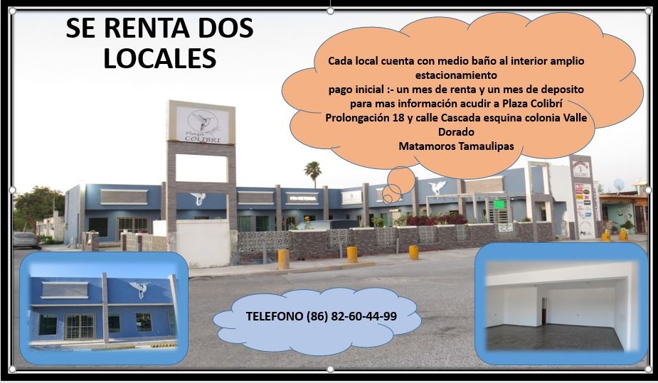 para mas información acudir a Plaza Colibrí Prolongación 18 y calle Cascada esquina colonia Valle Dorado