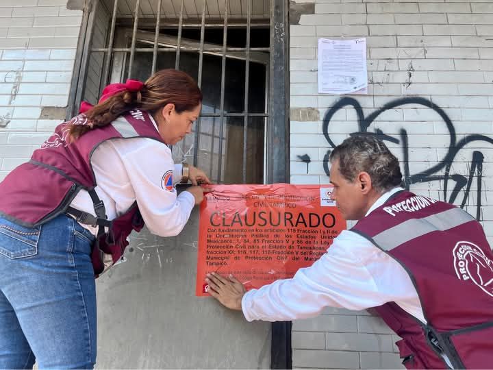 “Se realizó la clausura de un edificio antiguo ubicado en la calle Héroes del Cañonero, el cual presenta riesgo alto en la mayor parte de la estructura, corriendo el riesgo del colapso de una pared en la parte superior del edificio, aunado a que tiene varilla expuesta en estado de desintegración, además de balcones y techos agrietados, molduras; y un local comercial ubicado en la calle Álvaro Obregón, el cual se encuentra en desuso, y la marquesina representa un riesgo alto para las personas que transitan por debajo de la marquesina”, explicó.