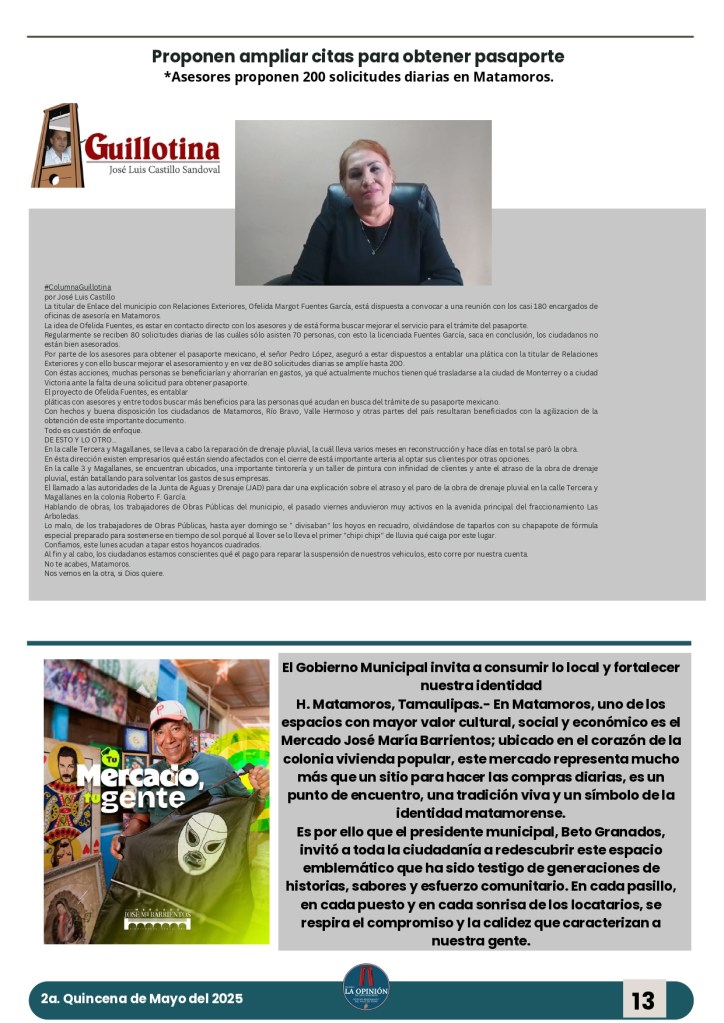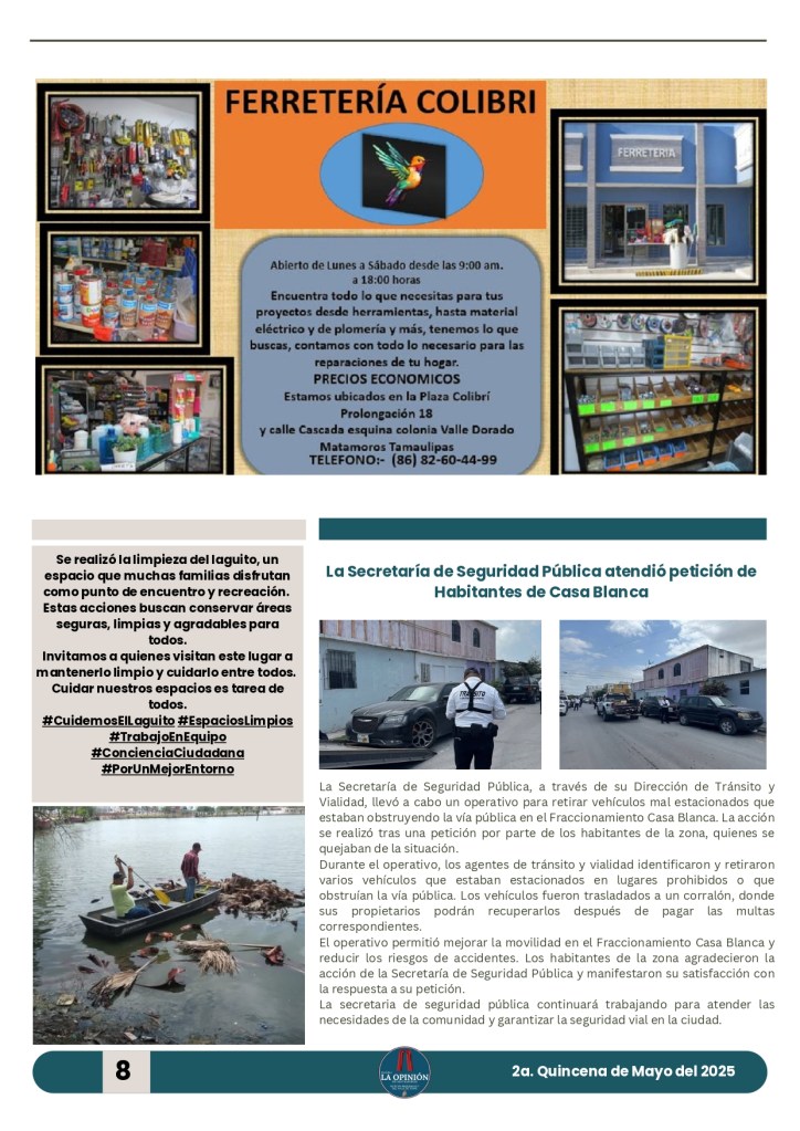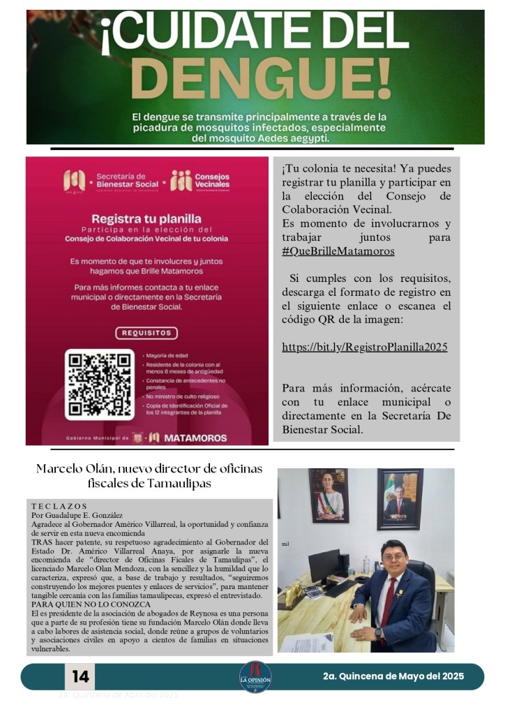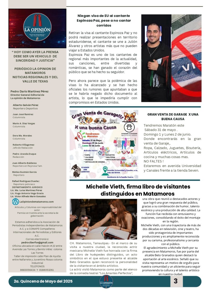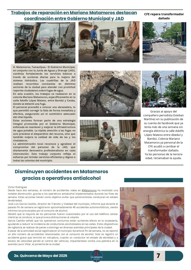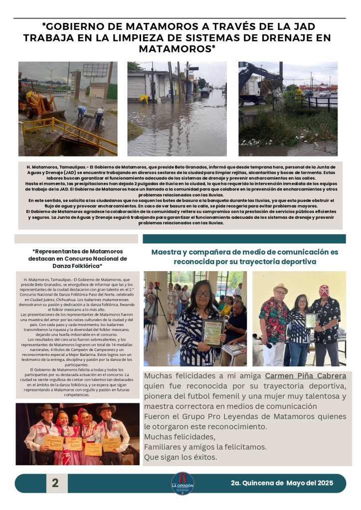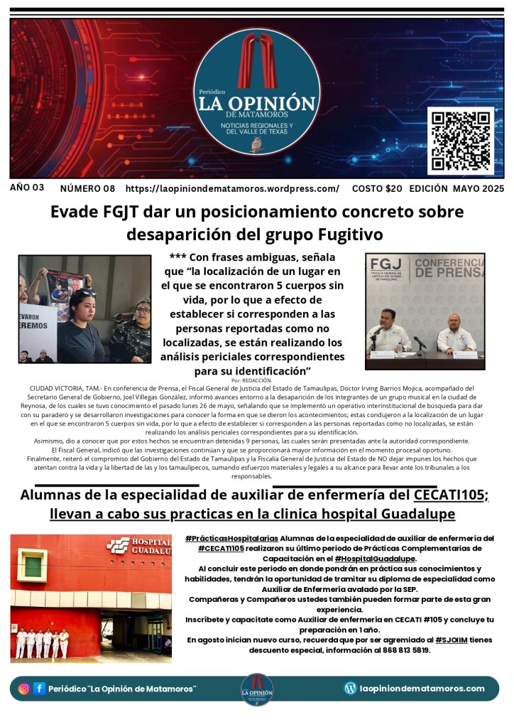 Buenos días amigos de su periódico 🗞️📰 La Opinión de Matamoros aquí les presentamos la segunda edición quincenal de Mayo Publicado porlaopiniondematamorosmayo 30, 2025Publicado en notícias, noticia nacional e internacional, noticias de Tamaulipas, noticias regionales, periodismoEtiquetas:#MATAMOROS Agradecemos a todos su preferencia y gracias por compartir nuestra información. Compártelo: Haz clic para compartir en X (Se abre en una ventana nueva) X Haz clic para compartir en Facebook (Se abre en una ventana nueva) Facebook Haz clic para compartir en WhatsApp (Se abre en una ventana nueva) WhatsApp Haz clic para compartir en X (Se abre en una ventana nueva) X Más Haz clic para compartir en Telegram (Se abre en una ventana nueva) Telegram Me gusta Cargando... Relacionado Publicado por laopiniondematamoros Soy Reportero Con más de 15 años de estar laborando en diferentes medios de comunicación. Ver más entradas