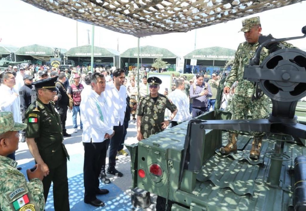Al acompañar al general Juan José Gómez Ruiz, comandante de la Cuarta Región, en la inauguración de la Exposición Militar «La Gran Fuerza de México», en el Polideportivo de esta ciudad, el gobernador destacó que el Ejército Mexicano tiene un papel de mayor relevancia en los gobiernos de la Cuarta Transformación, porque brinda seguridad, infraestructura, gestión social, administración de bienes nacionales, cuidado de instalaciones estratégicas en energía, en puertos e inteligencia.