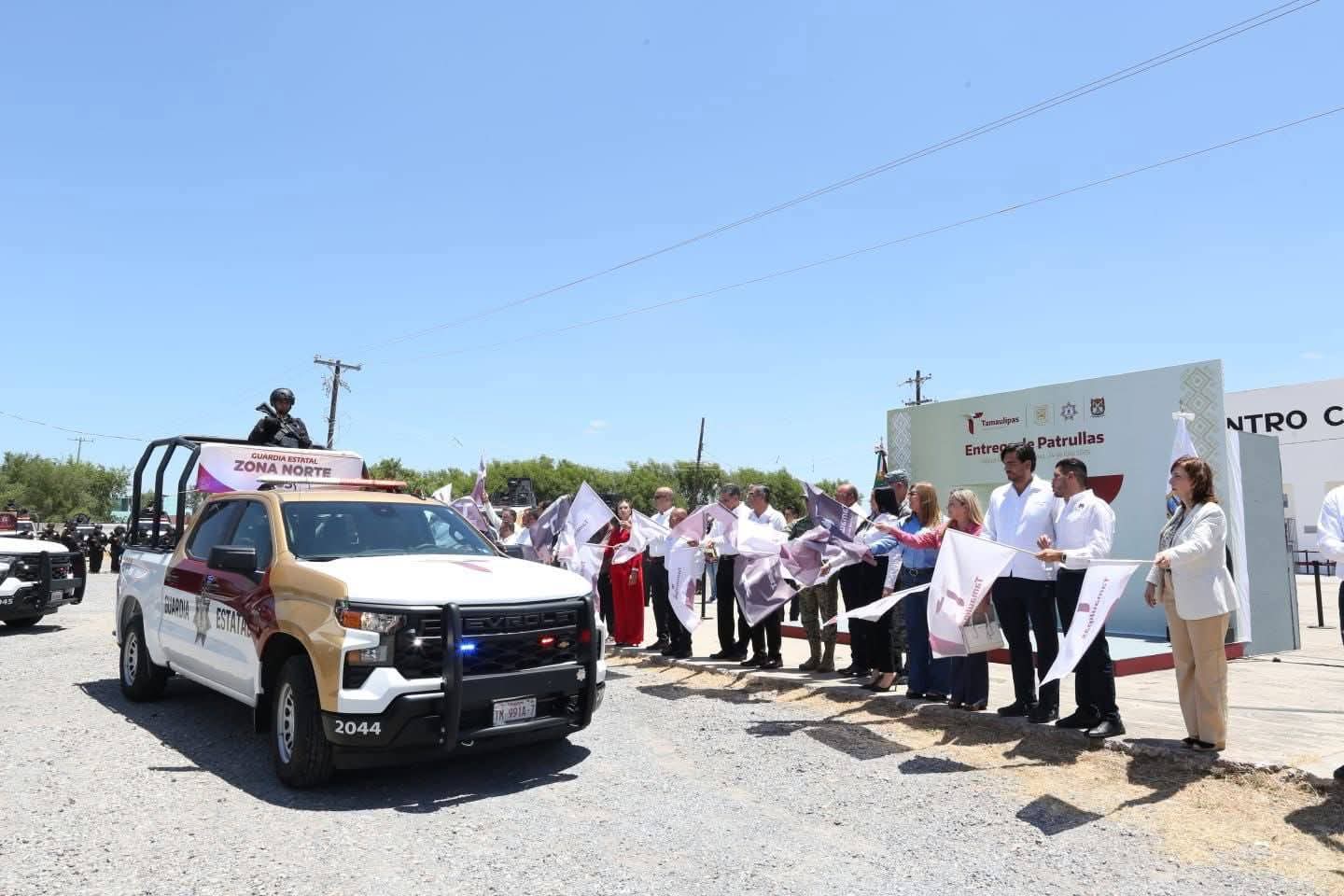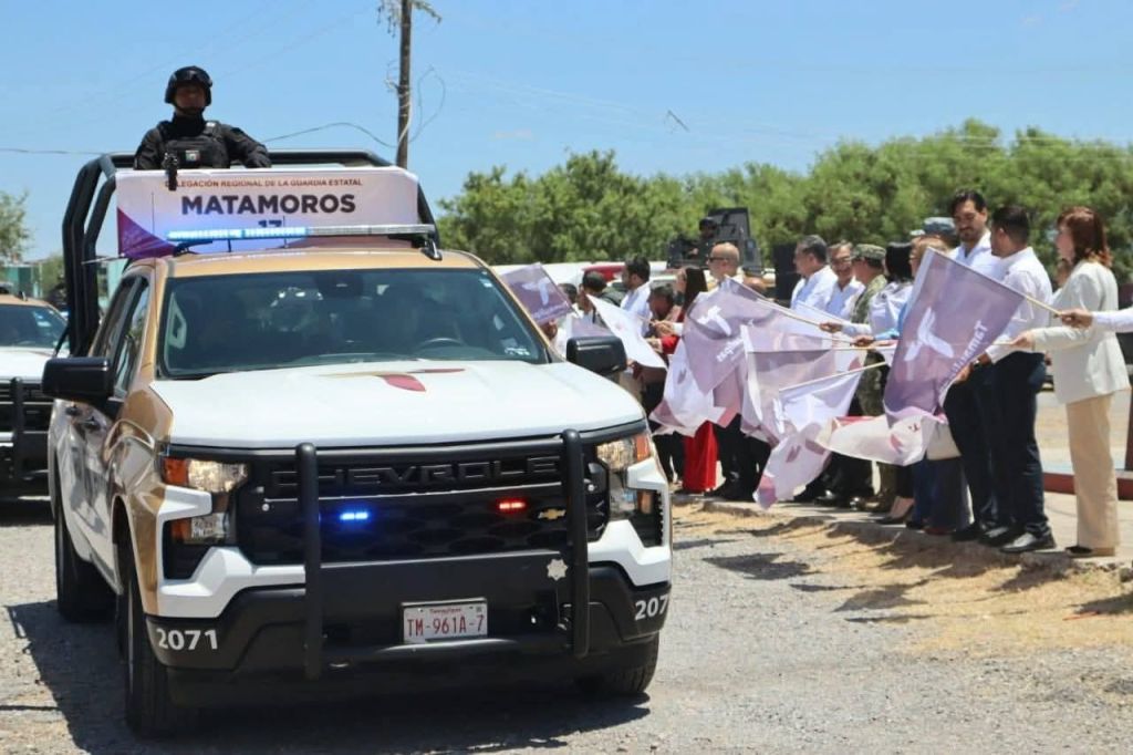 Durante el evento formal de la entrega de patrullas, Villarreal Anaya dijo que son acciones para «seguir fortaleciendo este avance y este rumbo que ha decidido tomar la sociedad en Tamaulipas, de la justicia, de la paz, de la convivencia social».