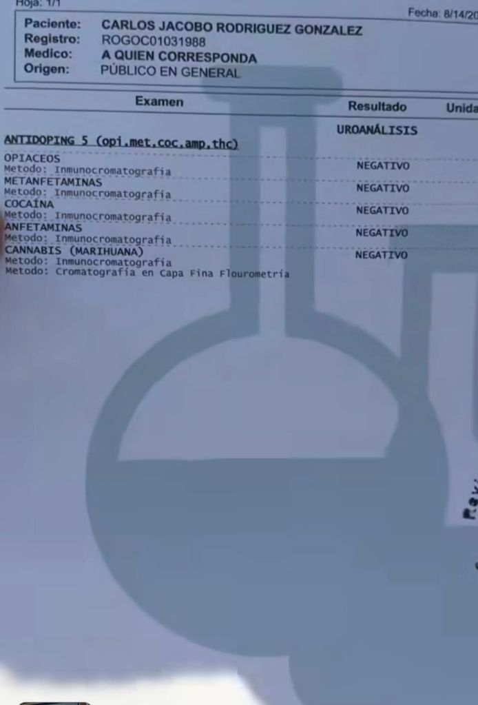 Tras 14 minutos de espera, Rodríguez informó en vivo que los resultados mostraron “nula presencia de sustancias”, y afirmó que no permitiría que “se dañe el prestigio de un servidor ni del Gobierno, el mejor de México, Piedras Negras, Coahuila”.