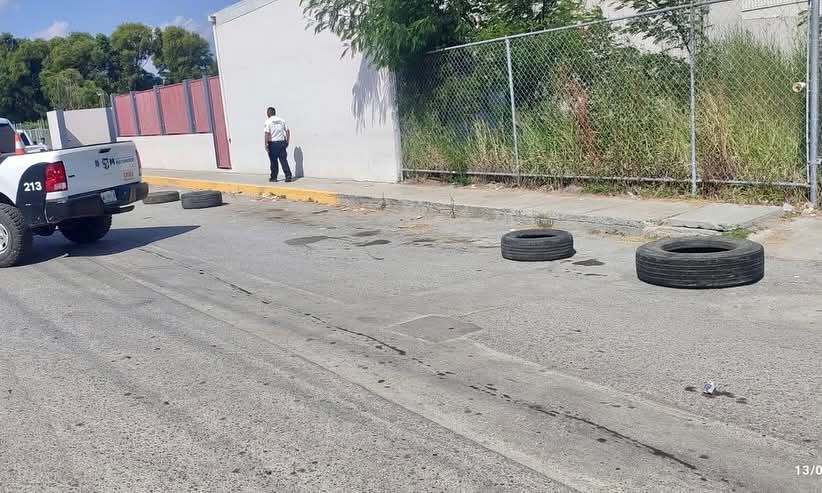 😱 Una empresa colocó llantas y pintó líneas amarillas sin permiso alguno para evitar que los derechohabientes del IMSS se estacionaran frente a su negocio.