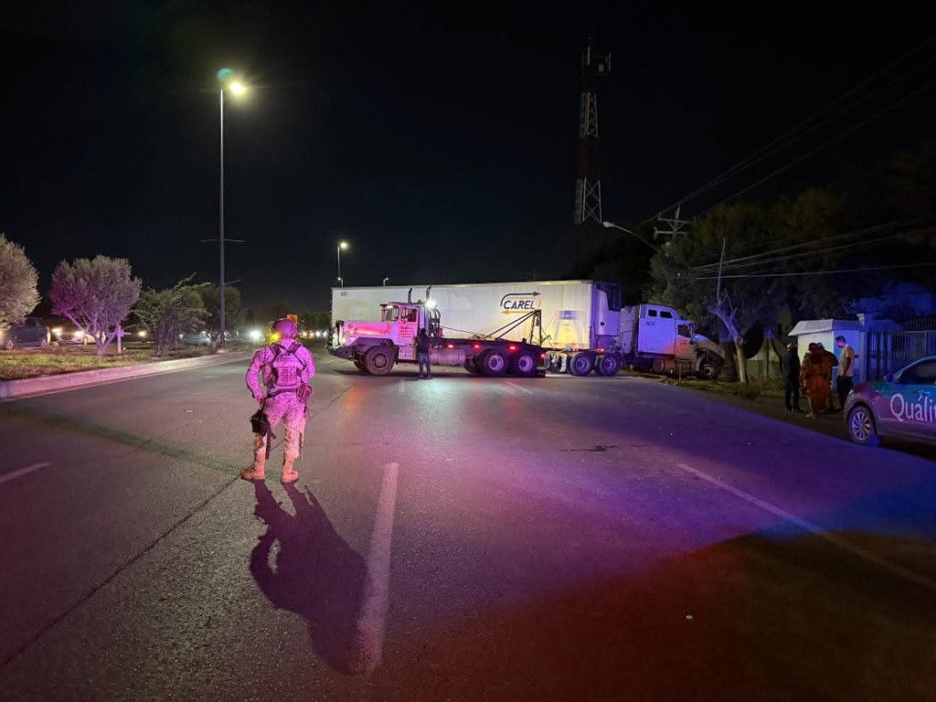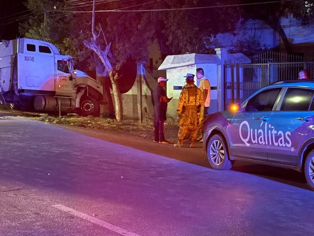 Un aparatoso accidente se registró la madrugada de este martes, cuando el conductor de un tractocamión perdió el control de su unidad tras quedarse dormido al volante, terminando impactado contra las instalaciones de la Octava Zona Militar en esta ciudad fronteriza.
