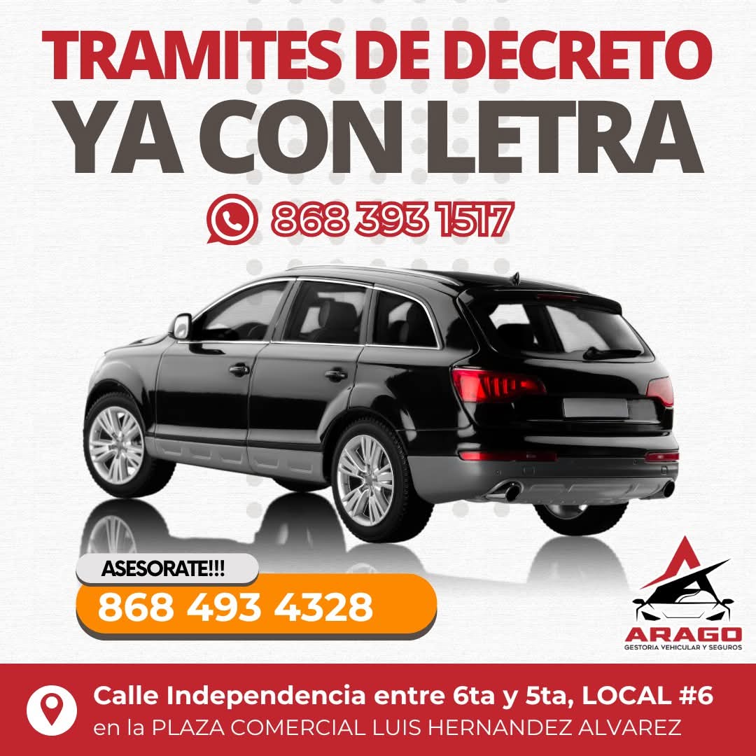GESTORIA VEHICULAR, ASESORIASTRAMITES Y SEGUROSNUESTROS SERVICIOS¿PUEDEN RETENER TU VEHICULO?TE OFRECEMOS AMPAROS PARA VEHICULOS NACIONALES POR DECRETOAsegura tu vehículo y protege tu tranquilidadExige respeto a tus derechos frente a la autoridadTAMBIEN DISPONEMOS DE:*Recuperación de títulos, facturas y pedimentos*regularización de autos*licencia de manejo, chofer, motociclista, automovilista*Placas del estado de Tamaulipas