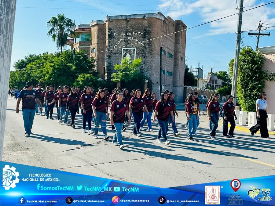 En el marco de las celebraciones por el 215 Aniversario del Inicio de la Independencia de México, el Instituto Tecnológico de Matamoros se hizo presente en el Tradicional Desfile Conmemorativo del 16 de septiembre, participando con entusiasmo y orgullo como parte de esta importante fiesta cívica.
