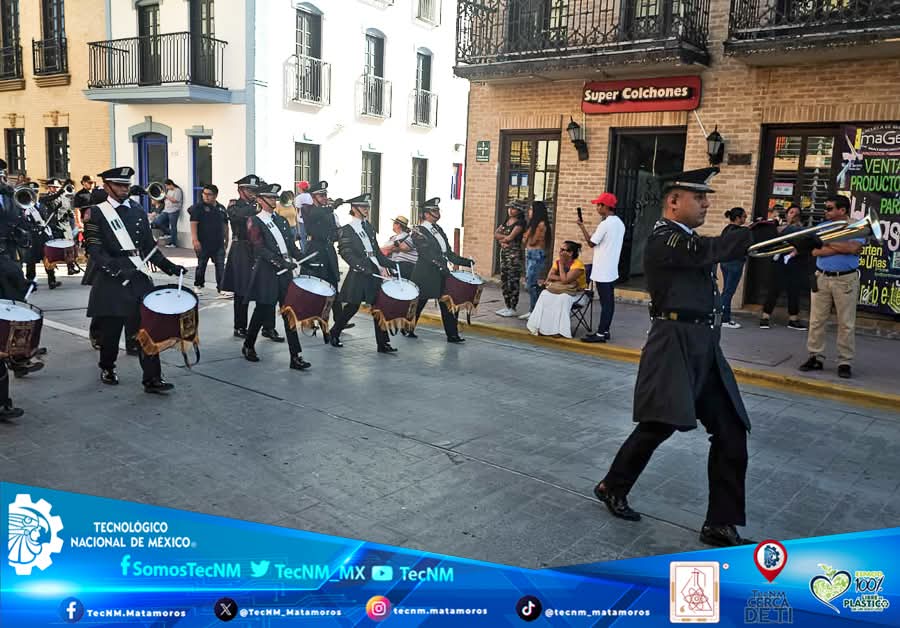 Se integraron el Banderín, Escolta, Banda de Guerra y contingente con participantes, todos estudiantes del IT de Matamoros de diferentes programas educativos.