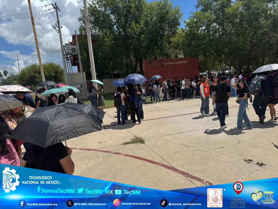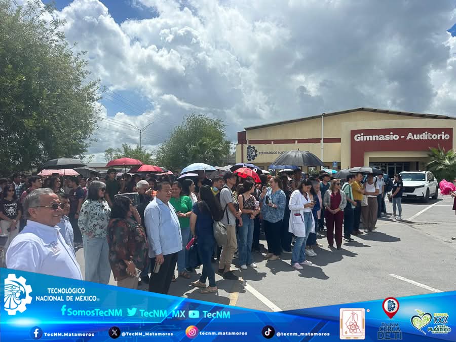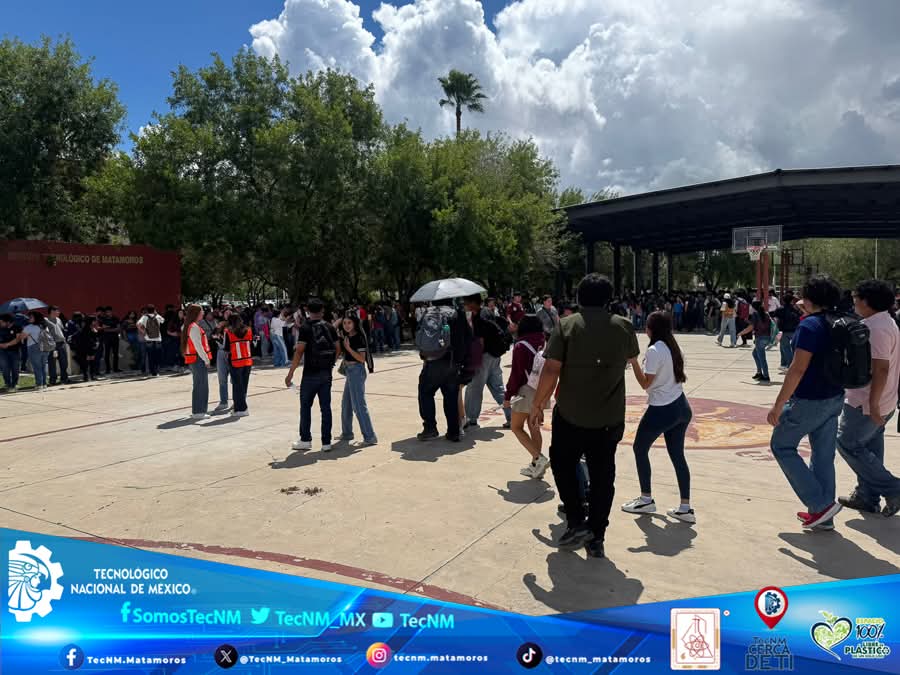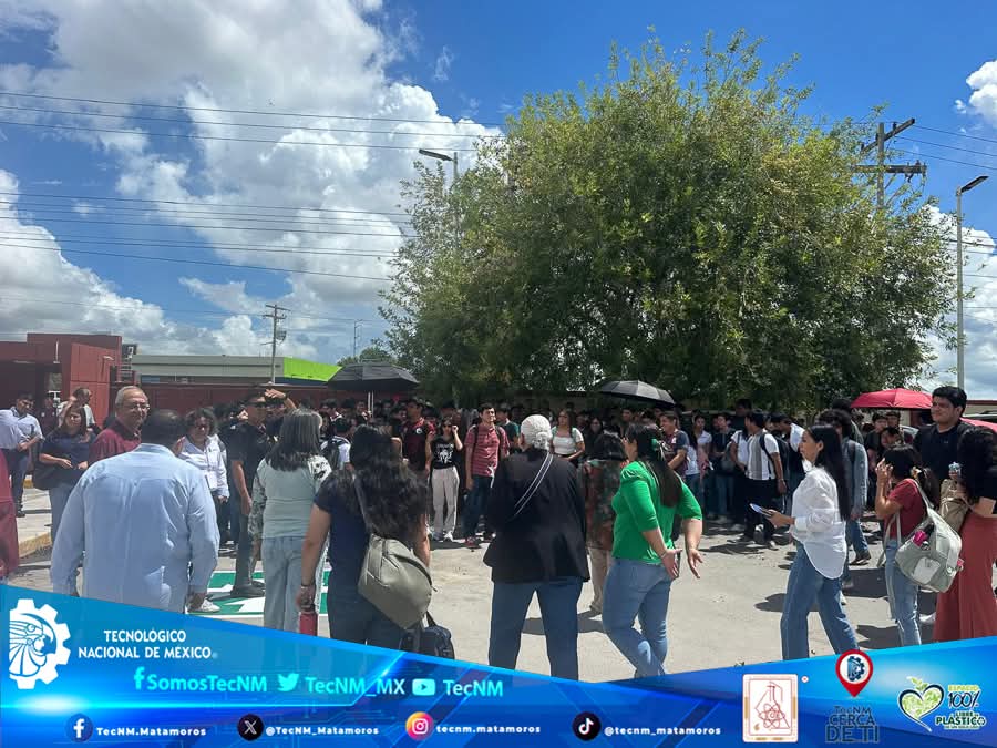 Este 19 de septiembre, la comunidad del Instituto Tecnológico de Matamoros participó de manera activa en el simulacro hipótesis de incendio, logrando evacuar los edificios de forma ordenada, en un tiempo óptimo y concentrándose en los puntos de reunión asignados.