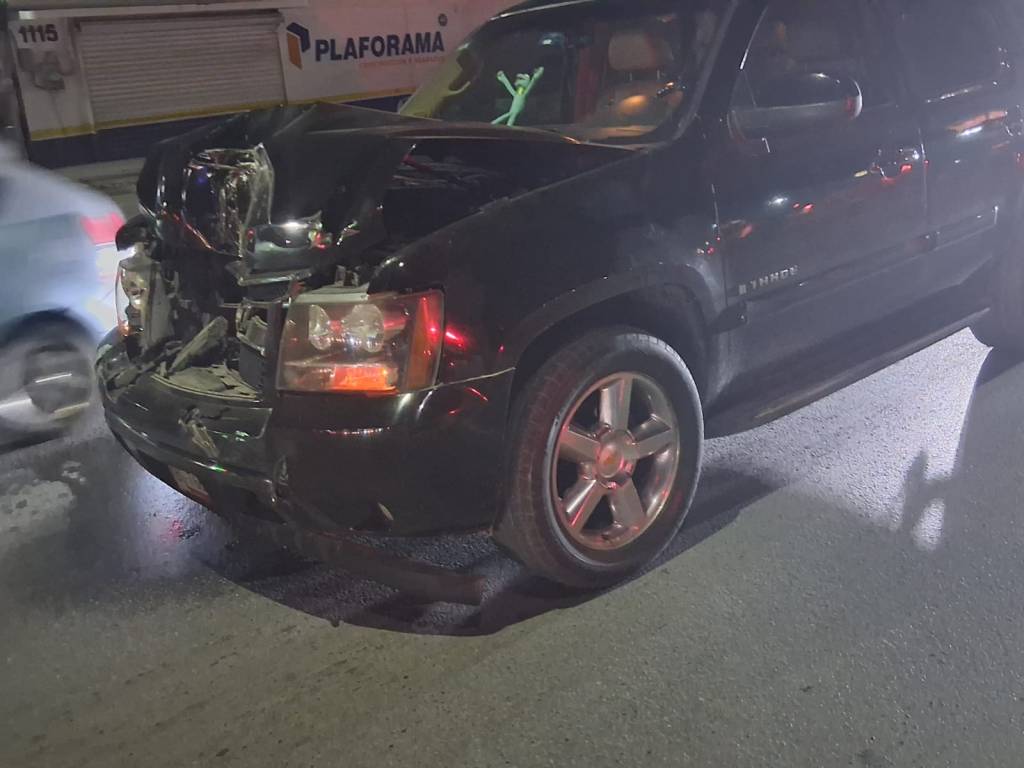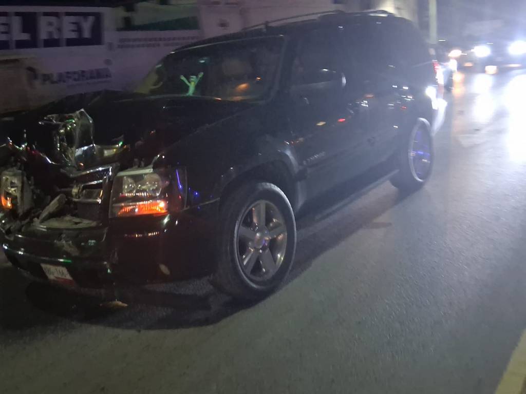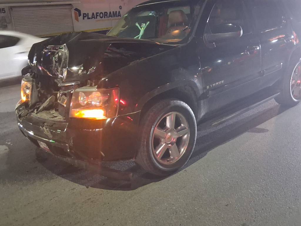 Un aparatoso accidente se registró sobre la avenida Lauro Villar y Mar Caribe, donde inicialmente se reportó la colisión entre una camioneta Tahoe negra y una camioneta Ford F-150 doble cabina color guindo, las cuales quedaron atravesadas en plena vialidad, generando congestionamiento vehicular.