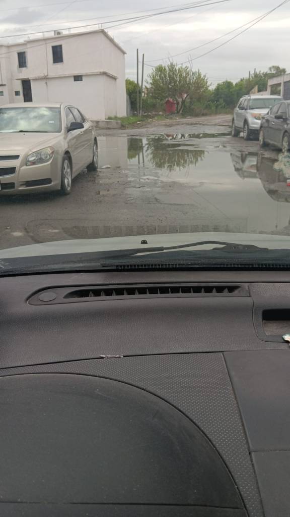 En el fraccionamiento Las Arboledas al final de la calle Alamos al topar con una calle sin pavimentar la cuál comunica con la colonia Los Fresnos se hace un charco de agua y no se sabe si es una fuga de agua o se forma con unas cuántas gotas de lluvia.