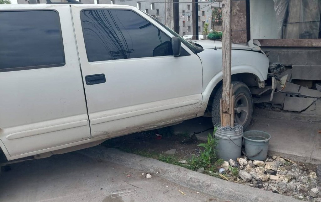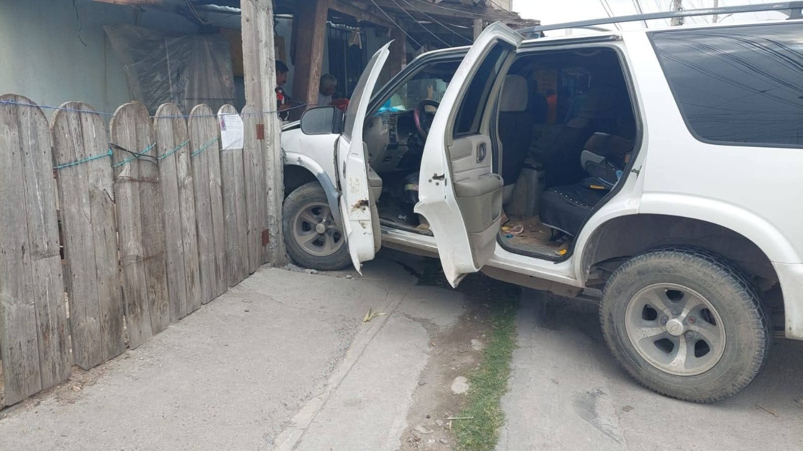 En el lugar se observa una camioneta que se impactó contra una casa y resultaron lesionados dos menores y la madre, todos policontundidos.