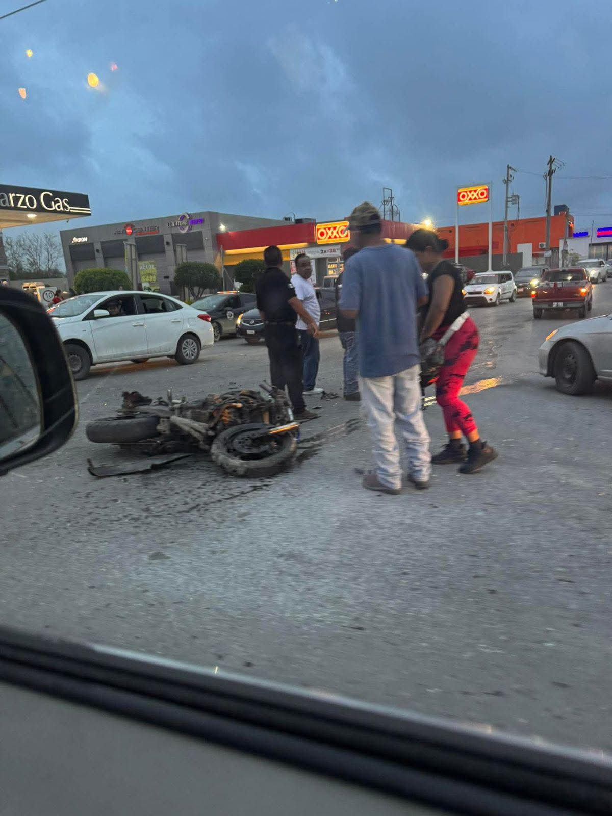 Un fuerte accidente se registró cuando un motociclista circulaba sobre la avenida Marte R. Gómez, momento en que un automóvil color blanco cruzó por la calle Canek, provocando que el biker se impactara directamente contra la puerta del copiloto.