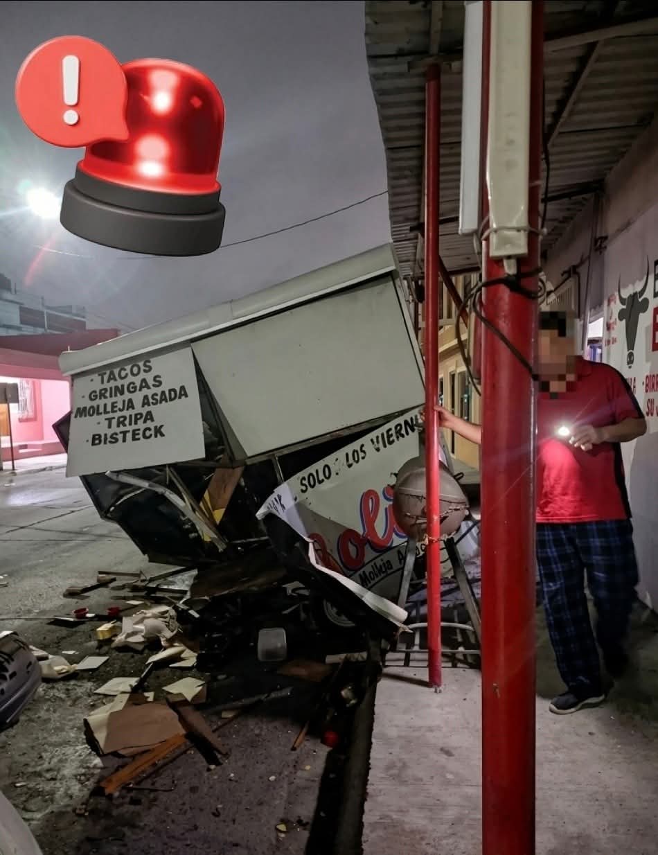 Se registro un fuerte accidente en la madrugada en la #CalixtoAyala Matamoros. El carreton tacos fue impactado durante la madrugada, quedando prácticamente destruido tras el fuerte golpe.