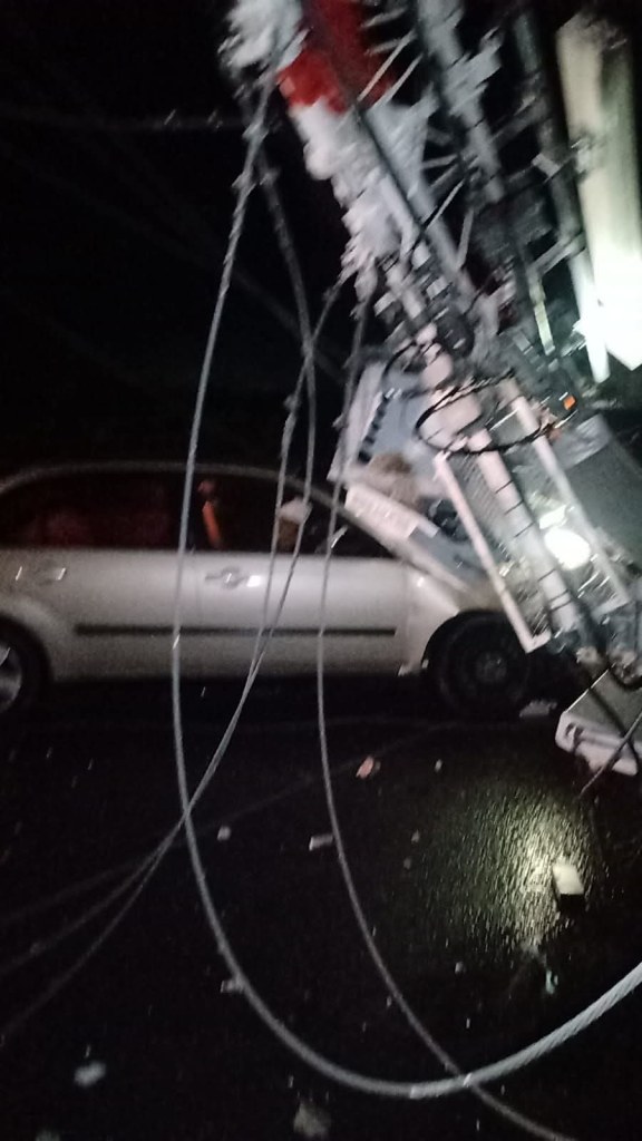 📍La estructura metálica impactó varios vehículos, por lo que se ha solicitado la intervención inmediata de los cuerpos de emergencia.