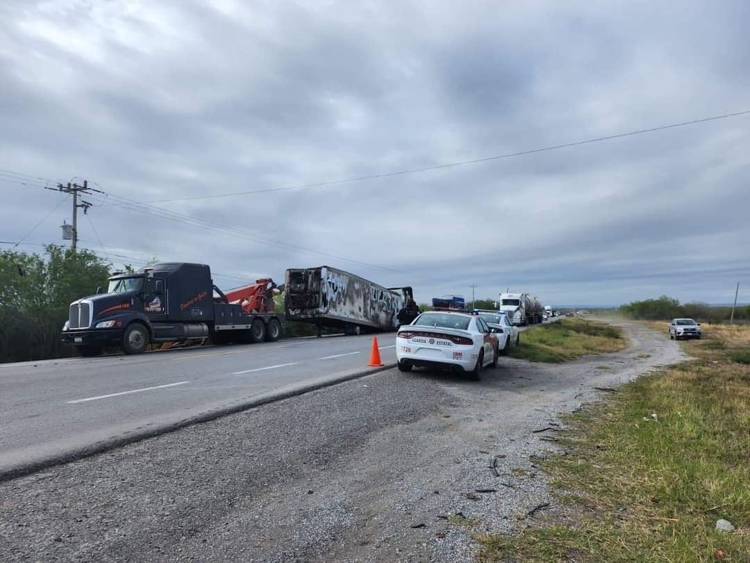 🚨🚔 Se incendia caja de tractocamión en Carretera Federal 101 a la altura de #Jiménez