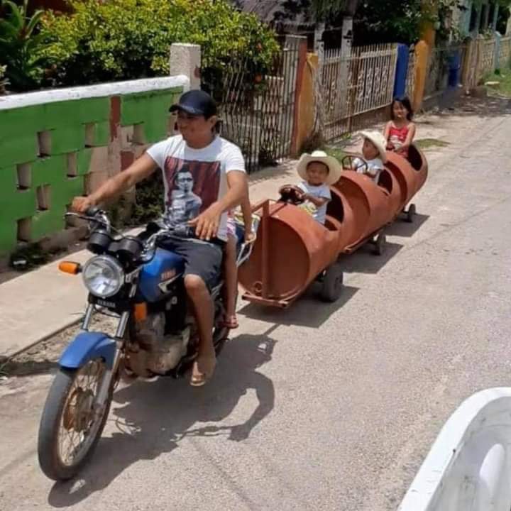 LoViral Huacho, creó un impresionante tren que es remolcado por su motocicleta para regalarles a sus pequeños un divertido paseo por el municipio de #Maní. Esta es la prueba de que el ingenio de un padre no tiene límites con tal de ver a sus hijos felices. Redes
