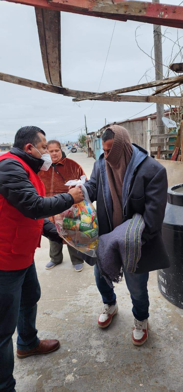 Entrega Cruz Roja cobijas y despensas a familias de Playa Bagdad y el Mezquital