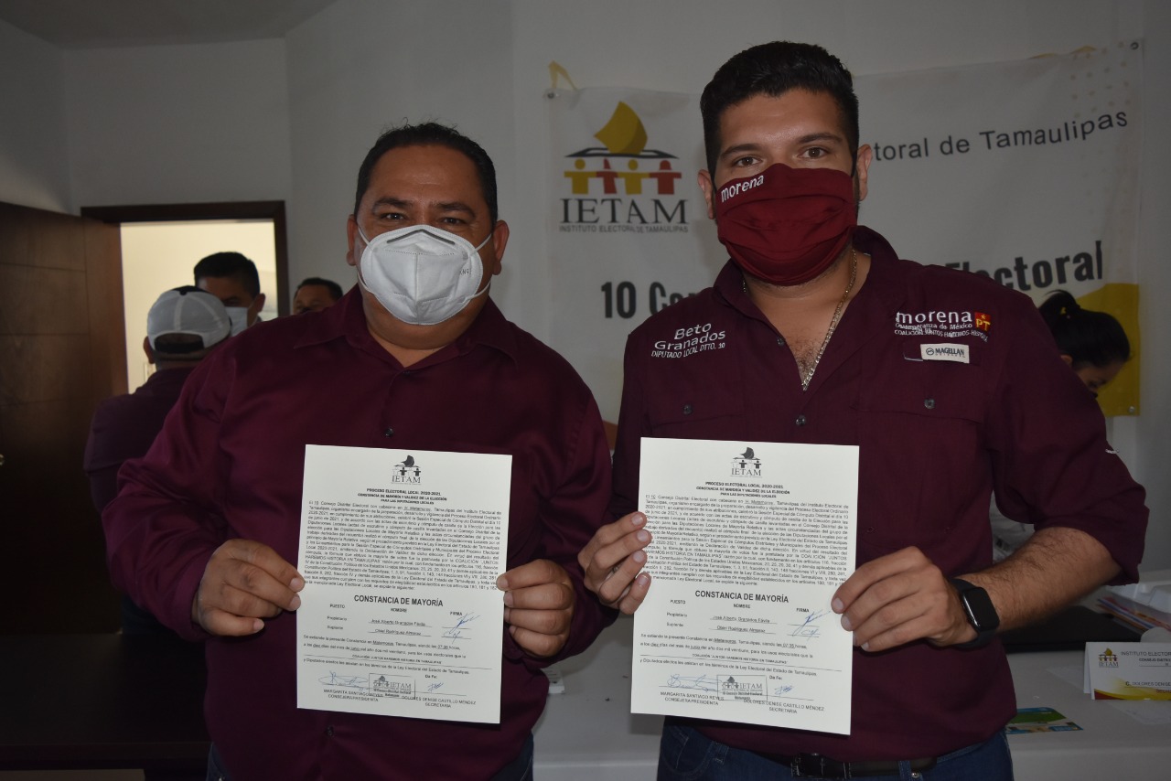 Felicitaciones al licenciado Beto Granados y a Obiel Rodríguez que hoy recibieron su constancia como virtuales ganadores en el distrito 10