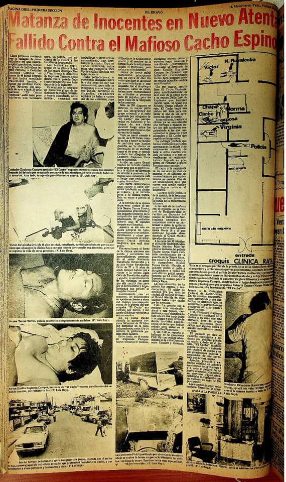 Un 17 de #Mayo del 1984. Asesinan a Personas en la Clínica Raya. De la Calle Ocampo 3 y 2 de la Zona Centro.Por querer asesinar al Famoso #Cacho. Créditos Por. Jaime Requena & Andrés Lara. Buscando eliminar la competencia, el 16 de mayo de 1974 ordenó el asesinato de “el Cacho” pero si falló.SigueSigue leyendo «Una Mañana de Terror, se vivio en H Matamoros Tamaulipas hoy hace 37 años»