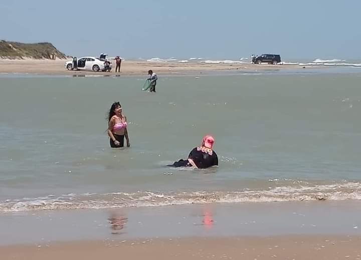 Así se divierten Mona y Geros en la Playa Bagdad de Matamoros