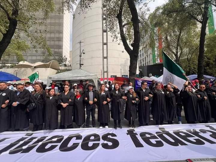 ATENCIÓN: Se manifiestan frente al senado en contra de la Reforma al Poder Judicial, jueces y magistrados vestidos de toga.